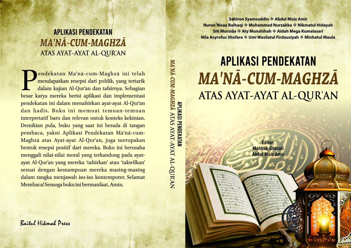 Pendekatan Ma’nā-cum-Maghzā ini telah mendapatkan resepsi dari publik, yang tertarik dalam kajian Al-Qur’an dan tafsirnya. Sebagian besar karya mereka berisi aplikasi dan implementasi pendekatan ini dalam menafsirkan ayat-ayat Al-Qur’an dan hadis. Buku ini memuat temuan-temuan interpretatif baru dan relevan untuk konteks kekinian. Demikian pula, buku yang saat ini berada di tangan pembaca, yakni Aplikasi Pendekatan Ma‘nā-cum-Maghzā atas Ayat-ayat Al-Qur’an, juga merupakan bentuk resepsi positif dari mereka. Buku ini berusaha menggali nilai-nilai moral yang terkandung pada ayat-ayat Al-Qur’an yang mereka ‘tafsirkan’ atau ‘takwilkan’ sesuai dengan kemampuan mereka masing-masing dalam rangka menjawab isu-isu kontemporer. Selamat Membaca! Semoga buku ini bermanfaat. Amin.